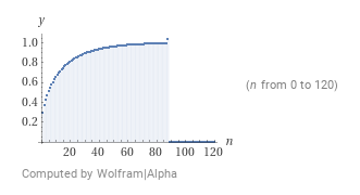 这个东西没有闭合形式,但是我们可以快速验证完备性:当积分上下界是 0 和 1 时,结果是 1;当我们取 \(n=5\) 时,得到结果大约 \(0.506\),说明少量样本并不具有说服力;而当 \(n=100\) 时,结果接近为 1。
